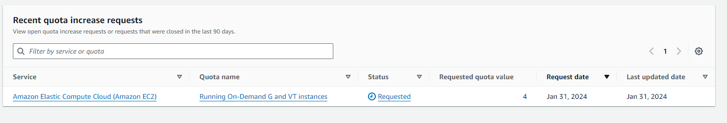 6. You can check the status of your request here. Click on the 'Quota request history'